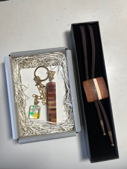 ある日、会社に出社してみると、ポストに不在通知が入っておりました。送り主を確認すると、つい先日ナビゲートを実施した方のお名前。手続きを済ませ、お品物を確認すると、そこには唯一無二の造形美に目を奪われる「ループタイ」の姿がありました。木の質感と繊細なデザイン。一目見て「これは市販品ではないな」と分かる、温もりのある作品でした。ハンドメイドの素敵な木工細工品をありがとうございます。